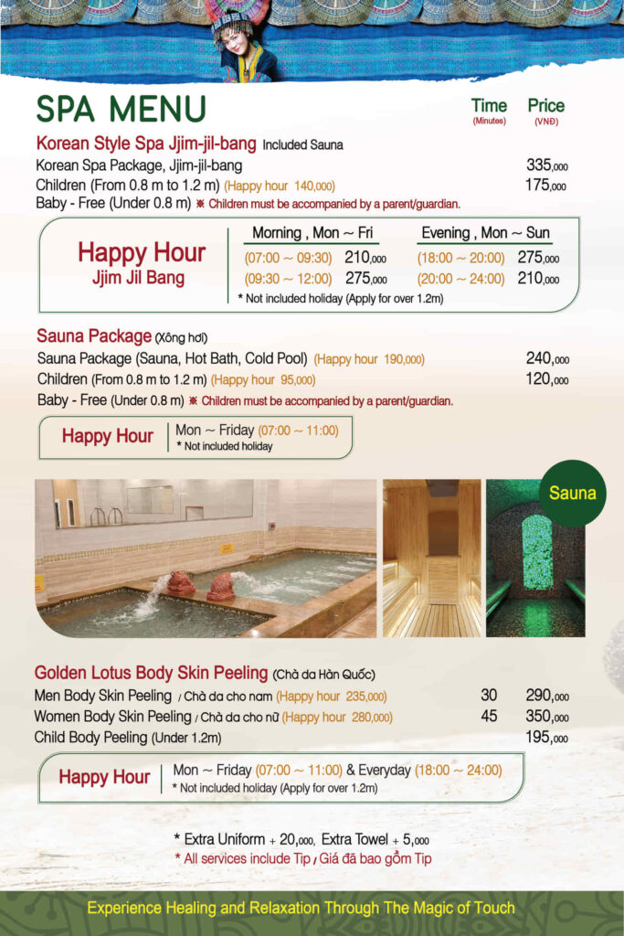 Bảng giá dịch vụ Jjim Jil Bang – Massage