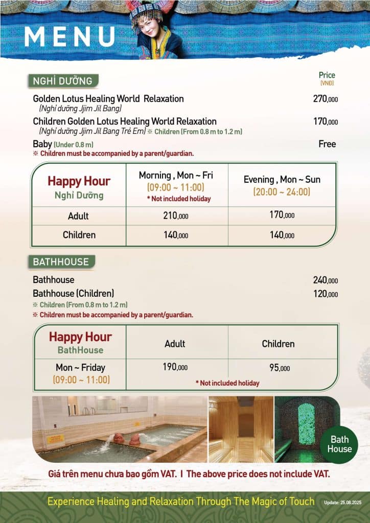 Bảng giá dịch vụ Jjim Jil Bang – Massage